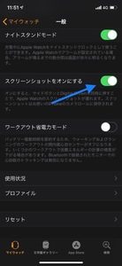 アプリを開き、マイウォッチ→一般→スクリーンショットをオンにする