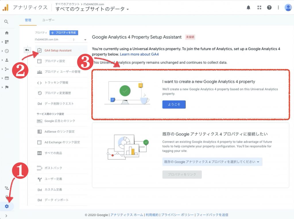 2.新しいGoogleアナリティクスプロパティの作成