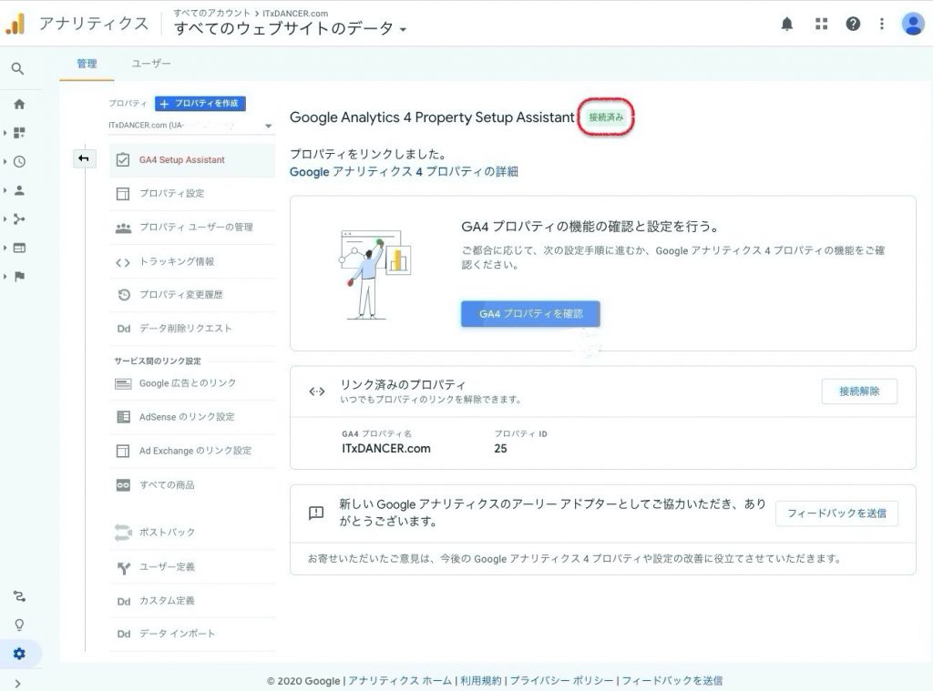 1.プロパティーの中からGA4 setup Asistant(GA4へのアップグレード)をクリック
