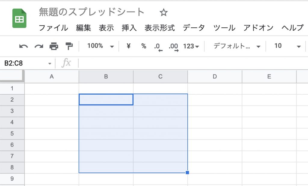 1.ユーザーに入力を許可する範囲を選択します。 ※あとから、範囲を追加することも可能なので、まずは一つ範囲選択します。