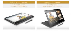 タブレットモードやスタンドモードなど、色んな形状で使える。