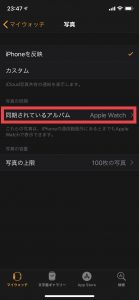 写真の項目内で、同期されているアプリを選択できます。 私は、Apple Watch用の共有アルバムを「Apple Watch」という名前で作っています。