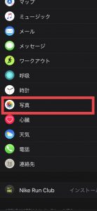 iPhoneのWatchアプリのホーム画面から「写真」の項目をタップ