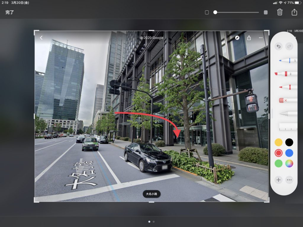 当然ストリートビューも、スクリーンショットができるので、書き込みできます。 人がいっぱいいるところや、わかりにくい場所では、説明するのに便利です。