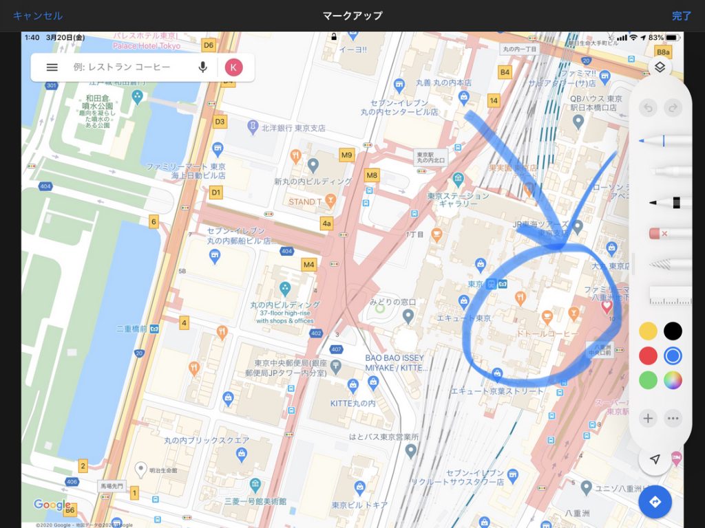 当然ストリートビューも、スクリーンショットができるので、書き込みできます。 人がいっぱいいるところや、わかりにくい場所では、説明するのに便利です。