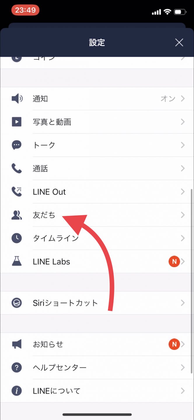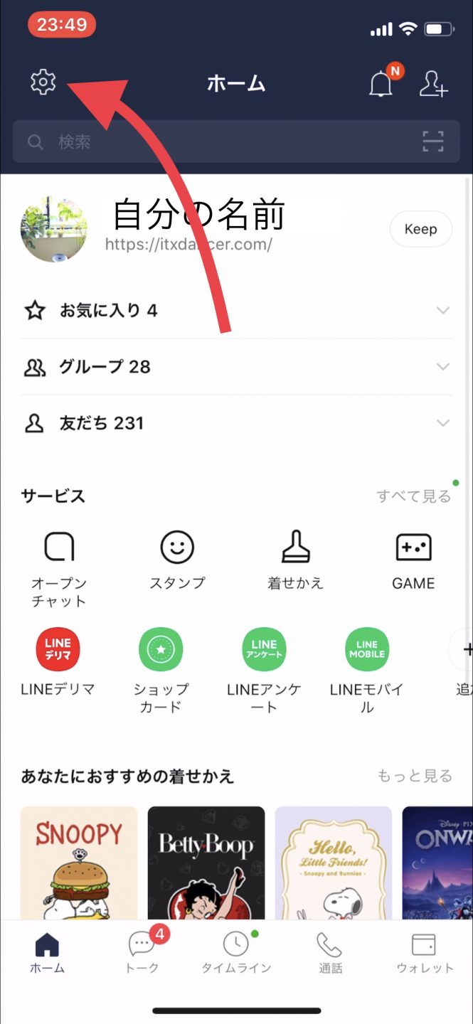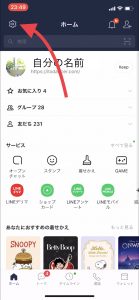 3.LINEホーム画面の左上の設定 ボタンを選択