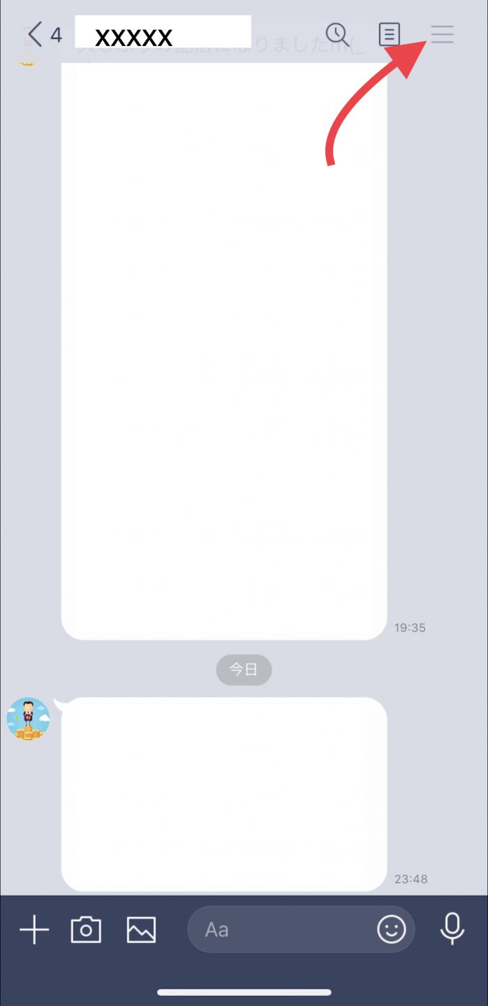 1.削除したい公式アカウントのトーク画面を開き右上のメニュー を選択