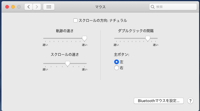 画面左上のリンゴのマークから、システム環境設定を開く。 システム環境設定の中のマウスを開き、”軌跡の速さ”のスライダーを、早いの方に動かします。 この方法よりも、もっと軌跡の速さを上げたい場合は以下の方法を使ってください。