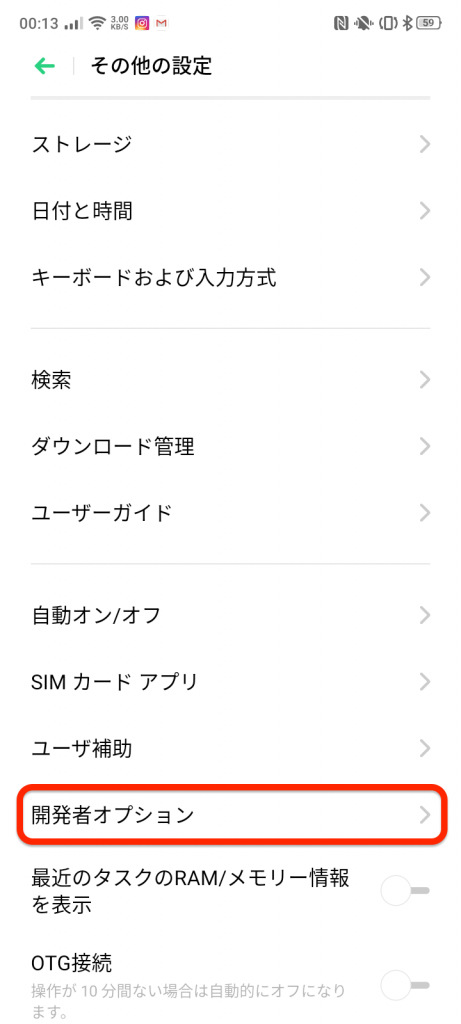 その他の設定から開発者オプションへ