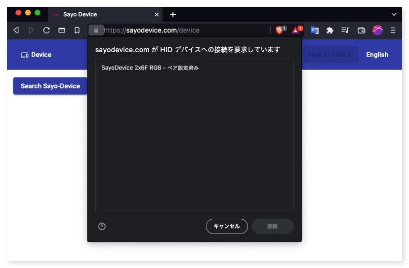 英語表示に切り替えて、Search Sayo-Deviceをクリック