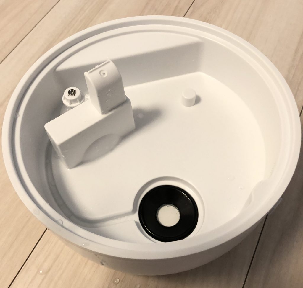 タンクがパカっと取れて、トレイの方もシンプルな構造なので、拭き掃除もしやすいです。 タンクの蓋も簡単に取れて、手も入るので、中の拭き掃除もしやすく、よく出来ていると思います。 毎日出かける前に、ひっくり返して、中の水を捨てて乾かしています。