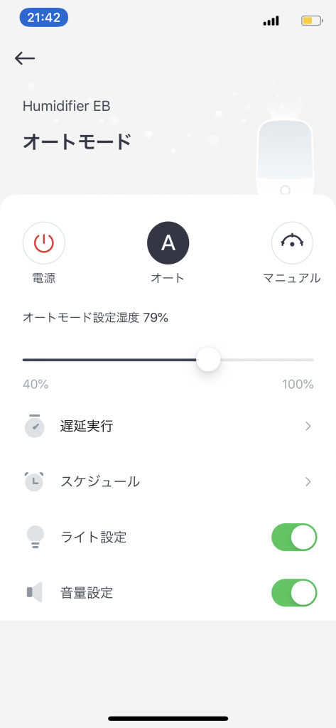 説明書にも書いてありますが、まずはSwitchBotの公式アプリ「SwitchBot」をインストール。 >スマート加湿器を登録 >デバイス一覧画面のスマート加湿器アイコン右上設定ボタン >クラウドサービスを有効に。同時にGoogleアカウントへログインさせられます。 これだけでスマホからのWiFi、外からの4G経由での操作ができるようになります。