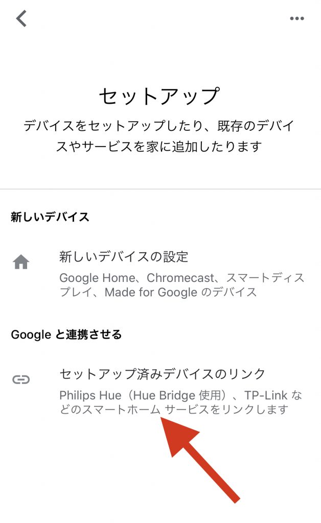 セットアップ画面の下部にある”セットアップ済みデバイスのリンク”をクリック