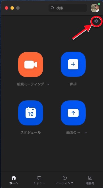 ZoomのPCアプリから設定画面へ