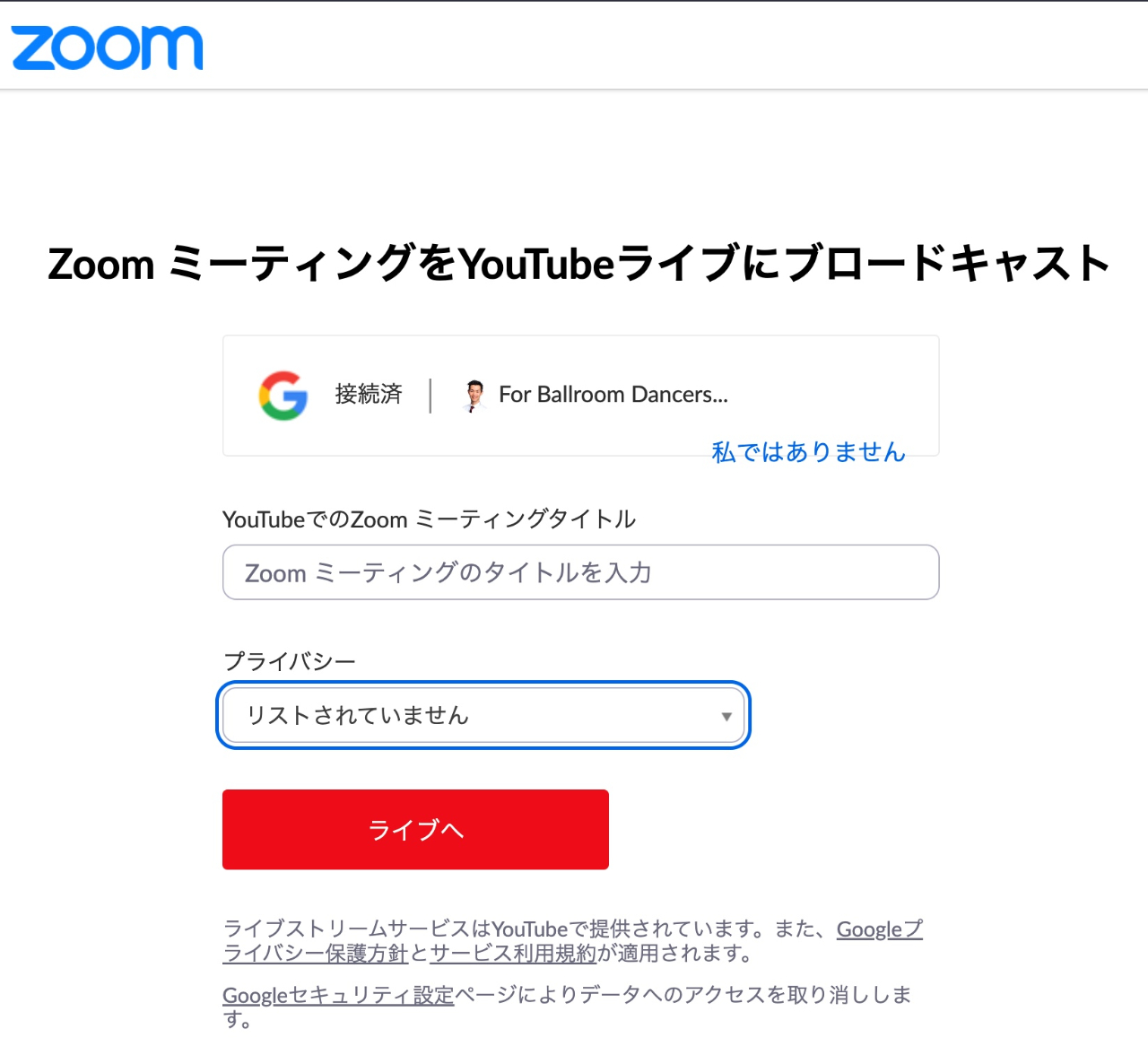 有料プランであれば複数の録画方法を選ぶことができますが、一番オススメなのがYoutubeライブストリーミングの限定公開版です。 ・手間が少ない ZoomからYoutubeに直接ライブストリーミングするため、ダウンロードやアップロードの手間がない。 ・シェアする、視聴できるまでの待機時間が0 録画ファイルをYoutubeにアップロードする場合は、Youtubeでのエンコードタイムが必要になりますが、ライブストリーミングであればミーティング終了後すぐに録画内容を見ることできます。・動画の保存期間に制限がない 保存先がYoutubeなので、Youtube ・録画を限定公開、非公開、公開と選ぶことができる。 ”リストされない”の表示を選ぶと限定公開設定となり、Youtubeの動画URLを知っている人のみが見られるようになります。 ・ギャラリービューの固定 となります。 ・Youtubeアカウントが必要(無料) ・事前の設定が必要(初回のみ) Zoomウェブサイトの”設定”から”ミーティングのライブストリーム配信を許可”をONにする ミーティング開始後にウィンドウ右下の詳細ボタンからレコーディングをクリックし、”このコンピューターに録画”をクリックします。 手順